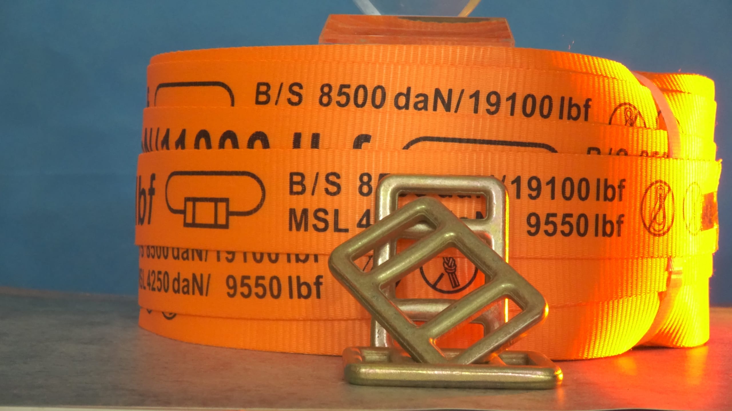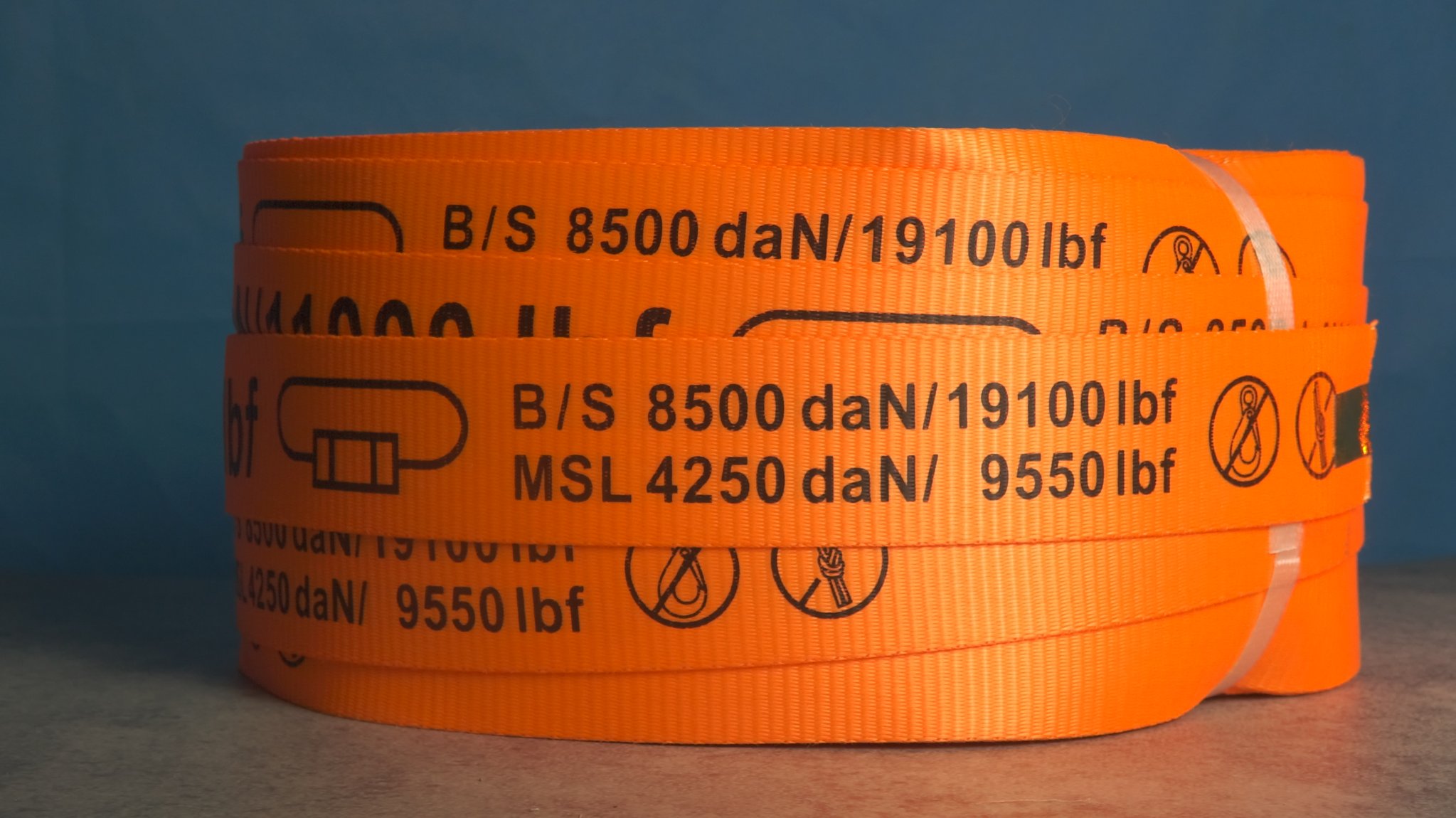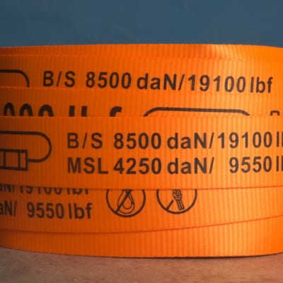 Dây đai vải Polyester 40mm, tải trọng 5 tấn cuộn 100m có in chữ